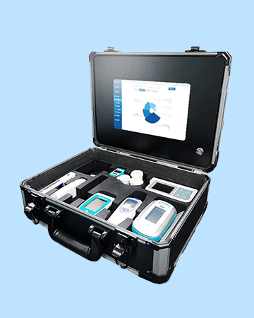 SH-T18智能健康一體機可以一體化測量身高、體重、血壓、脂肪人體成分、體溫、血氧、血糖、腰臀比、尿液分析、肺功能檢測、中醫體質辨識、視力測量、心理健康檢測等體檢項目。還新增了骨密度、快速心電、酒精檢測、動脈硬化、糖化血紅蛋白、膳食寶塔等項目功能,可根據具體需求進行靈活選配,可以測量25+大類體檢項目、100+項健康指標,測量結果更全面。讓老年人體檢更方便,只需一臺產品即可;